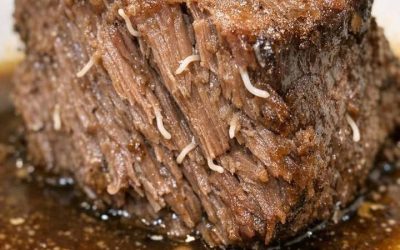 Pulled my beef roast out of the slow cooker and saw these weird white stringy things poking out of the meat. They look like little worms or parasites. Is the meat infested?